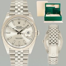 MINT Rolex DateJust 41 Silver Stick Jubilee White Gold Fluted 126334 Watch Box